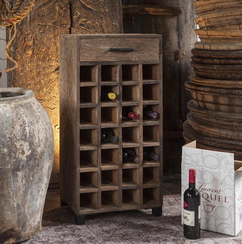 Dit prachtige wijnkastje is gemaakt van oud truckwood hout.
