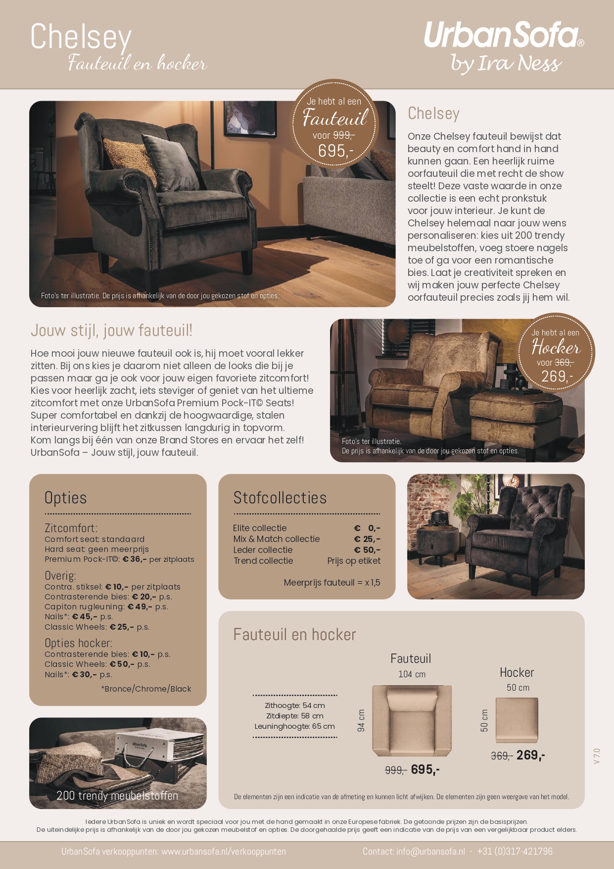 Dat een fauteuil niet saai hoeft te zijn, bewijst de Chelsey oorfauteuil. Dit pronkstuk is niet alleen mooi, maar zit ook nog eens zeer comfortabel. Kies uit verschillende zitcomforts, van superzacht tot lekker stevig. Stoere nagels of liever een romantische bies? Laat je fantasie de vrije loop en personaliseer je eigen perfecte Chelsey oorfauteuil.