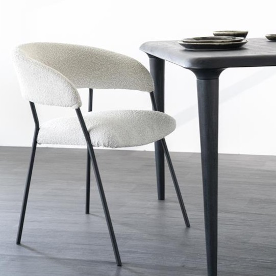 Deze trendy eetkamerstoel zijn mooi gestoffeerd in een teddy stof. de stoel is te verkrijgen in vier verschillende kleuren.