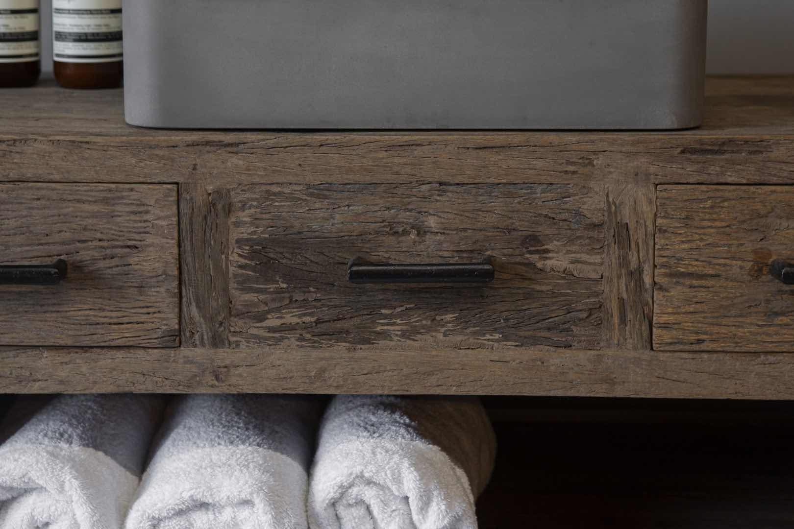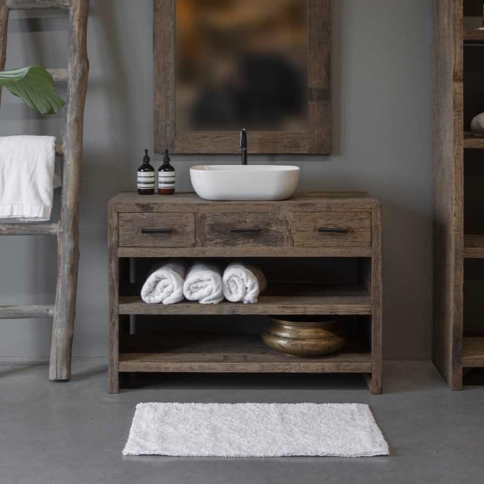 Badkamer meubel Gent is een stoer badkamermeubel gemaakt van rustiek oud hout en voorzien van solide matlak. Het meubel wordt exclusief waskom, kraan en sifon en/of andere benodigdheden geleverd.