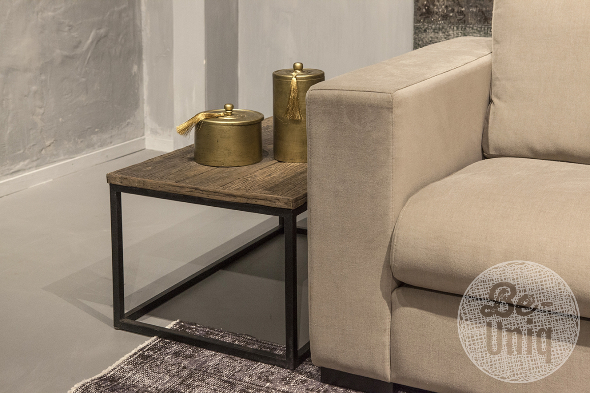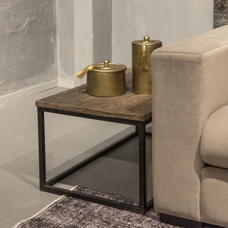 Salontafel/bijzettafel Easy is gemaakt van rustiek oud hout in combinatie met een mooi smeedwerk onderstel.