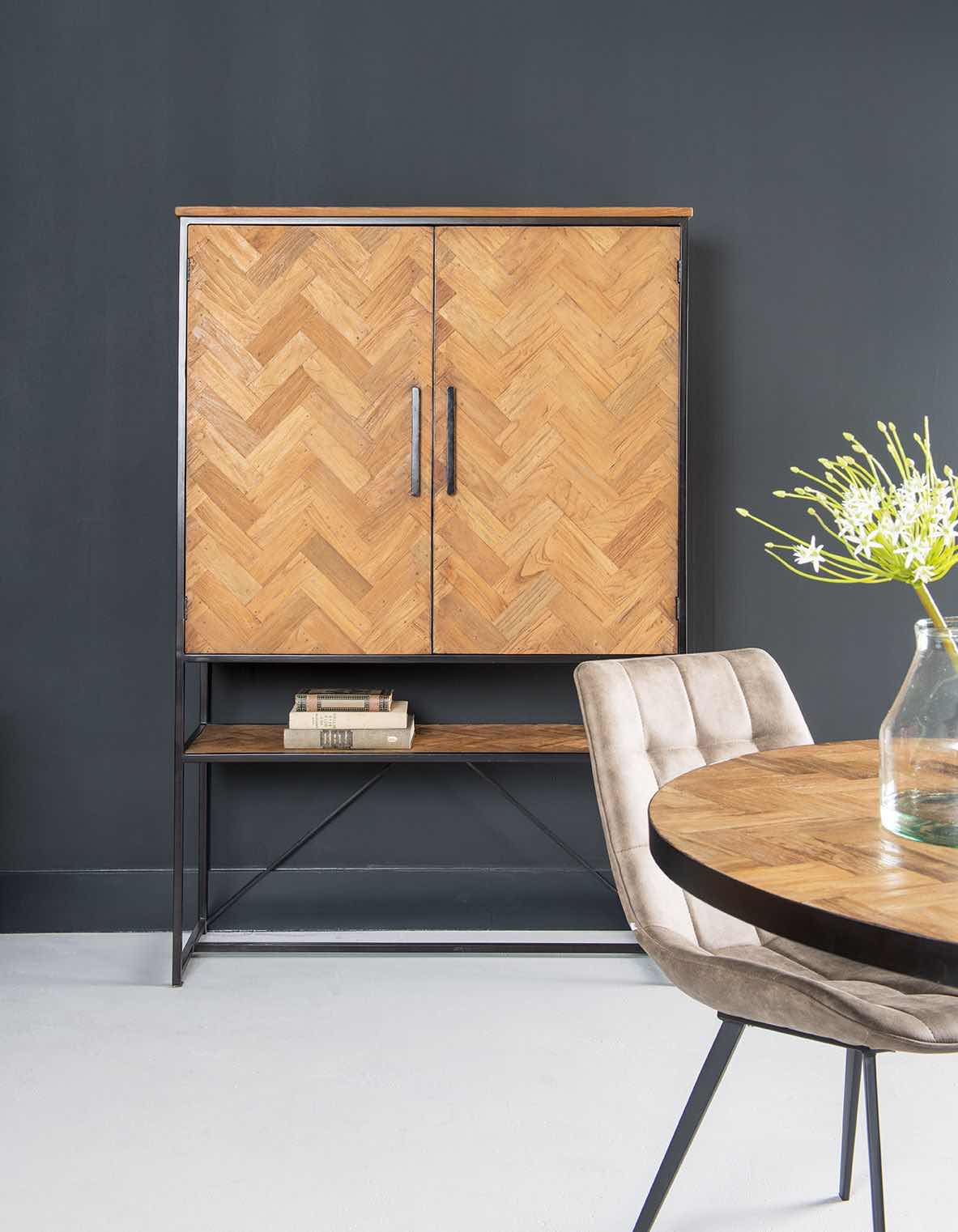 Materiaal: teakhout, in mooi visgraad patroon