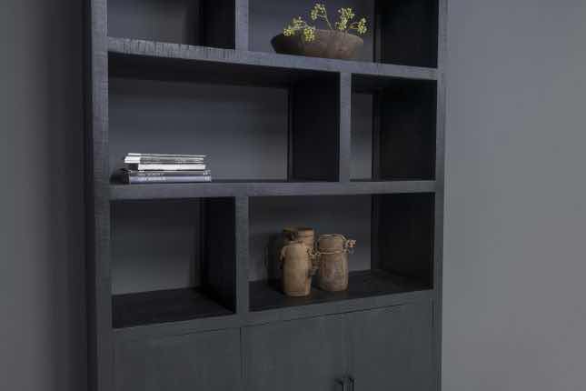 Deze gave vakkenkast van zwart gemaakt mango, is een lust voor het oog.
