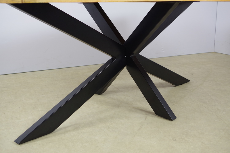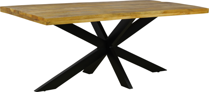 De Bodi eetkamertafel (mango gelakt) heeft een rechthoekig blad en een spinpoot.