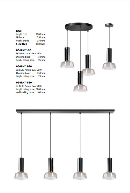 De Beal lamp is verkrijgbaar in verschillende opstellingen.