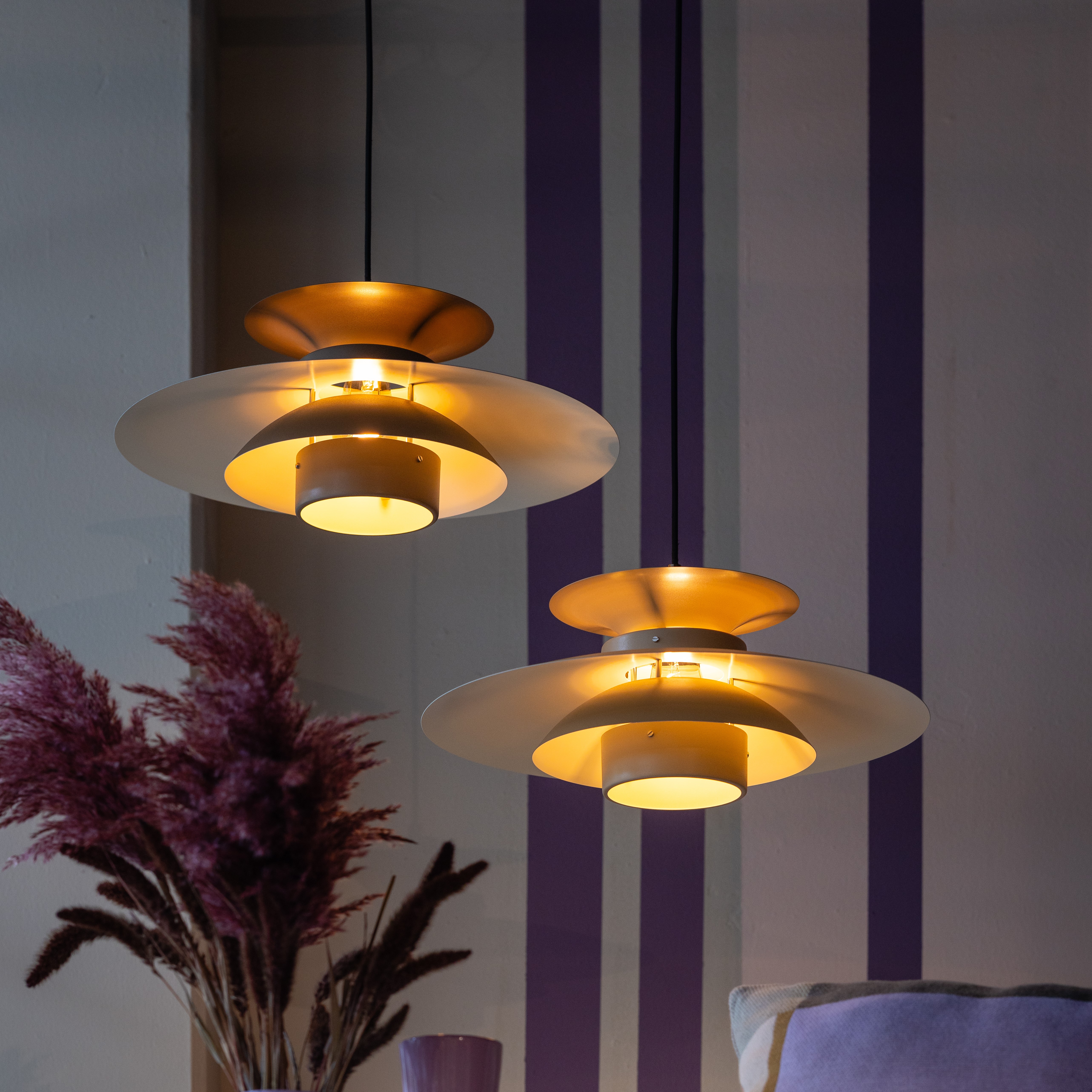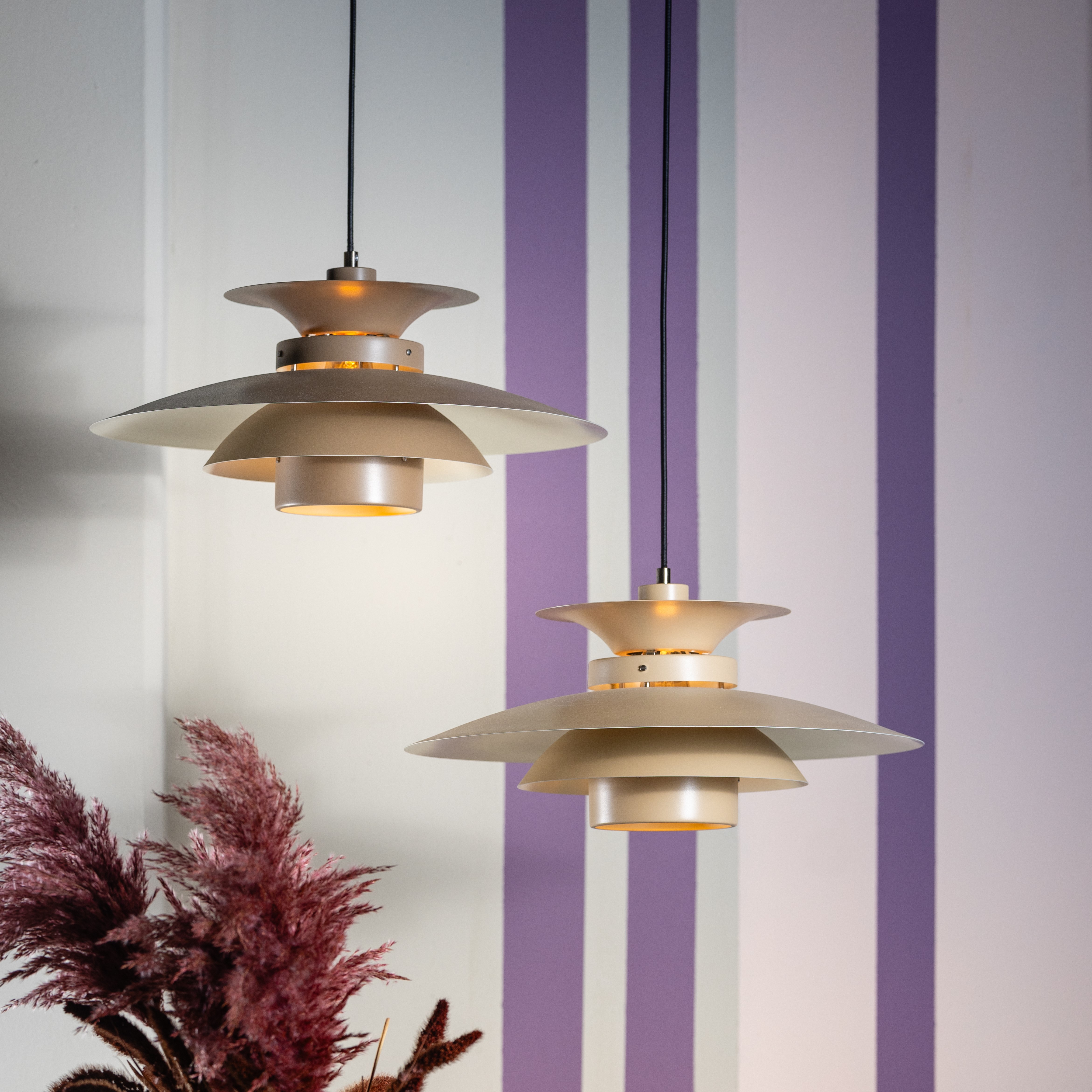De Potenza lamp is verkrijgbaar in drie verschillende kleuren: sand, taupe, black/copper.