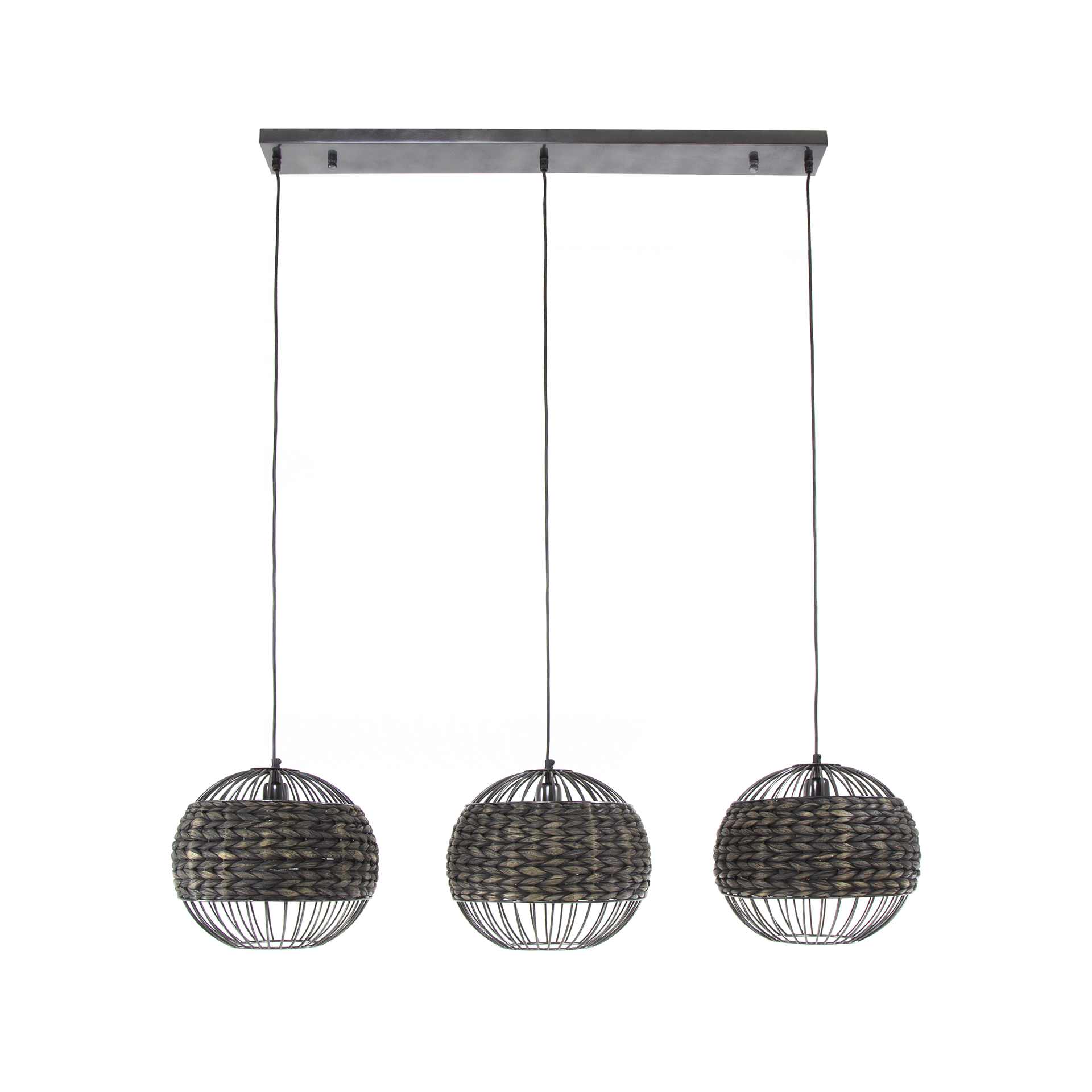 Hanglamp van waterhyacint, afgewerkt met zwart metaal.