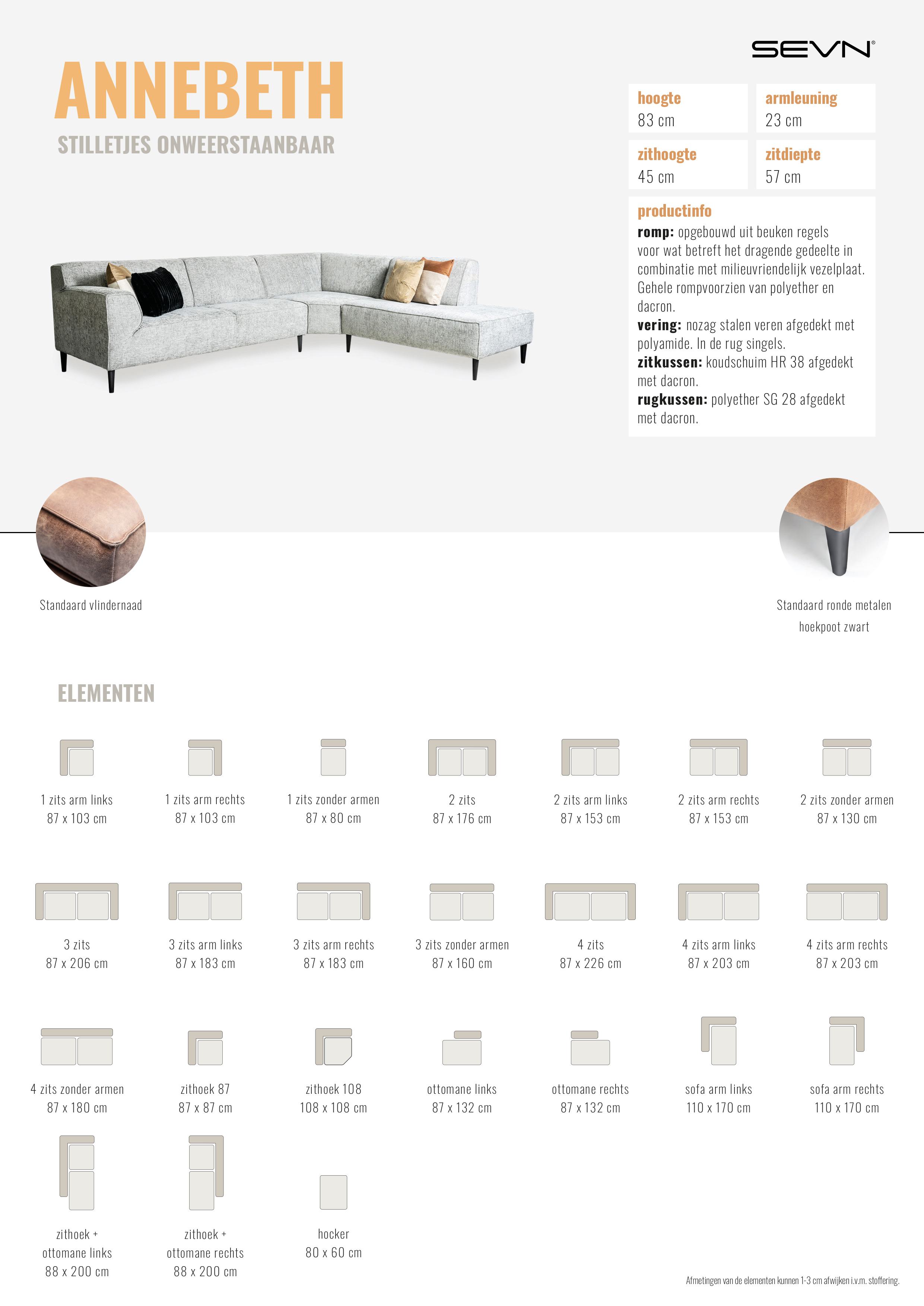 Annebeth is modulair samen te stellen in de verschillende opstellingen. Verkrijgbaar in de gehele stof- en leercollectie.