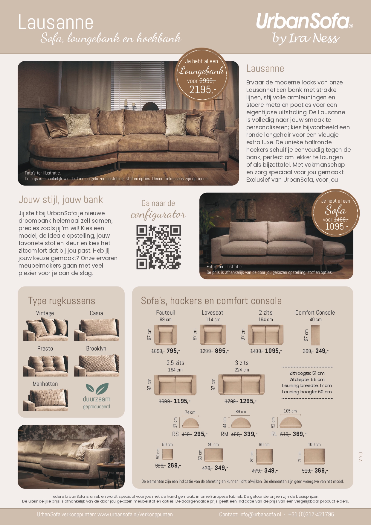 Kies uit de talloze opstellingen, uit de twee zitdieptes, verschillende vullingen en uit meer dan 200+ stoffen en leder. Kijk voor alle informatie op de Lausanne product flyer.